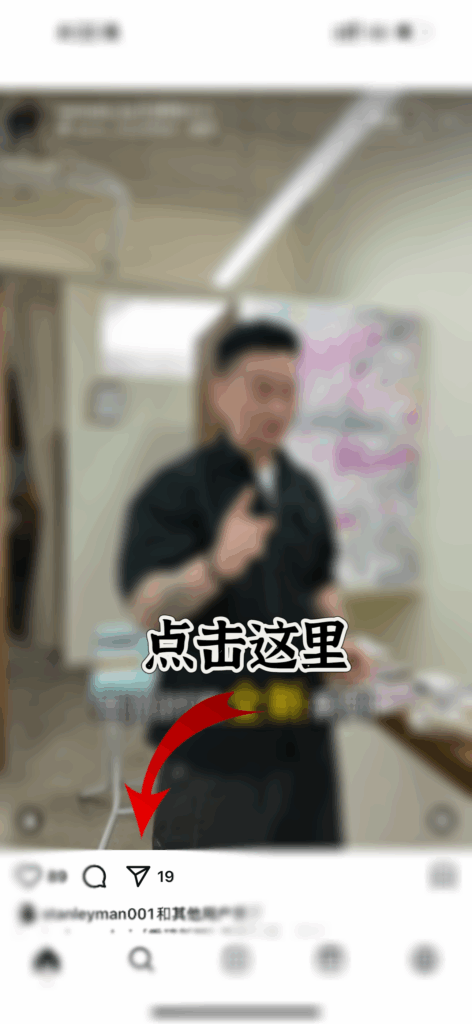 保证你的网络环境是正确的情况下,打开 Instagram App 随机找到一个作品按照图片实例操作