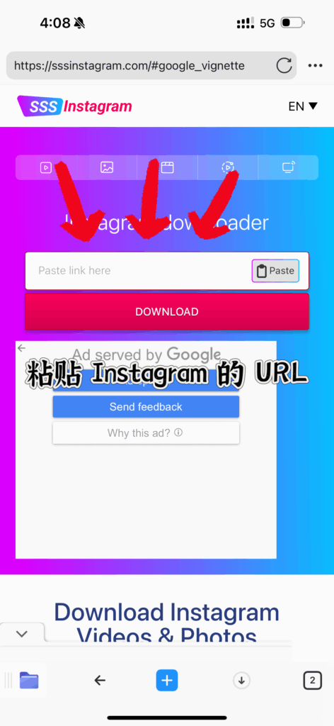 接下来打开 Document 的 App,在地址栏填入这个 URL 地址:https://sssinstagram.com